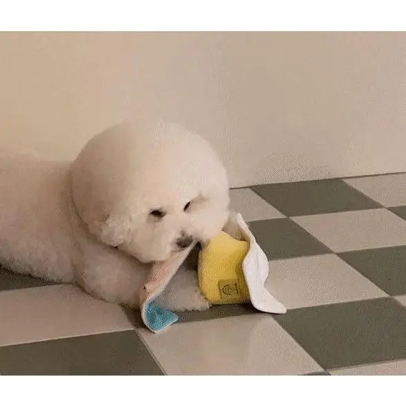 This is a sound toy created for dogs to hide food and treats. Using healthy food grade flannel material, it can hide dog snacks and food in various shapes, and can also make a soft sound without being particularly loud.